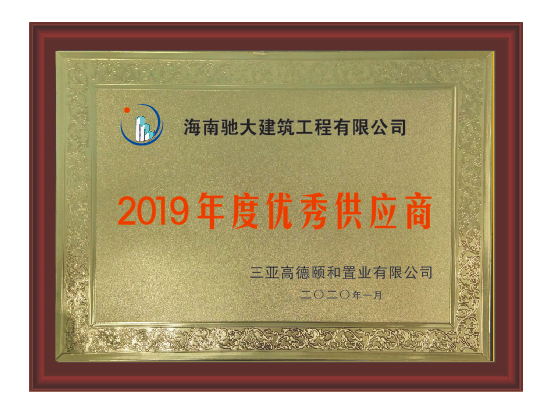 2019年優(yōu)秀供應商-三亞高德頤和置業(yè)有限公司